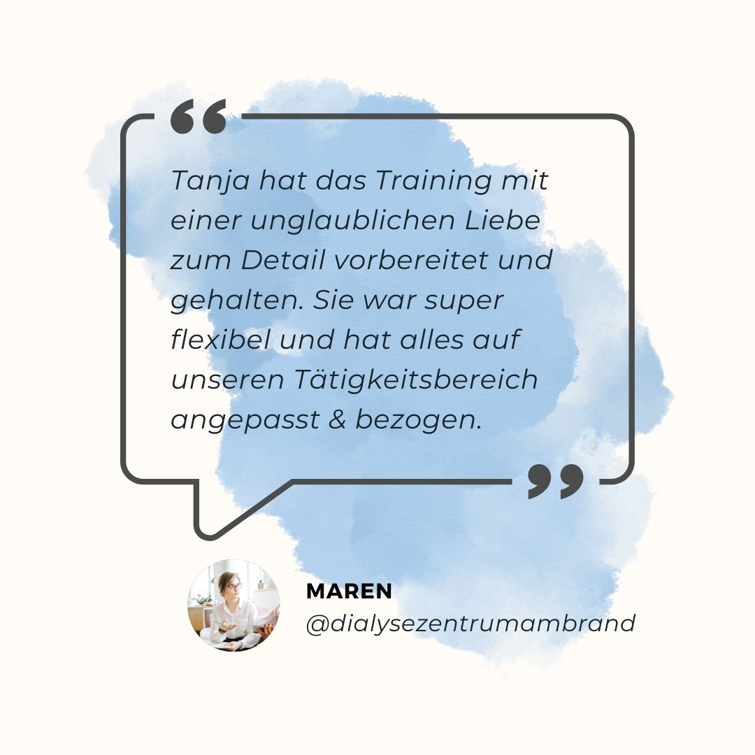 Alle Workshops, Trainings und Coachings werden individuell auf Ihre Bedürfnisse von mir angepasst. In einem kostenlosen 30-minütigen Gespräch können wir herausfinden, wie ich Sie und/oder Ihr Team am Besten unterstützen kann und ob die Chemie stimmt.